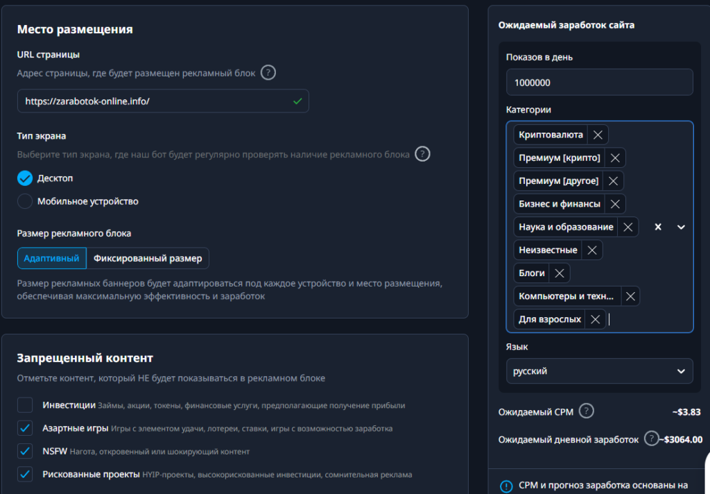 Но рекламное место появилось уже в списке «рабочих».